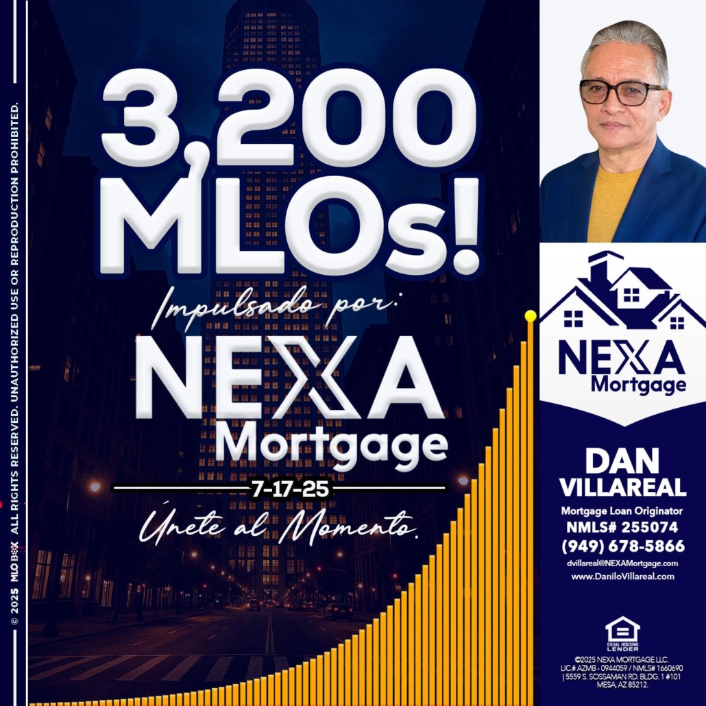 Hi, my name is Dan Villareal. I’m a Loan Officer with NEXA Mortgage LLC., offering personalized mortgage solutions, fast customized quotes, great rates and service with integrity.