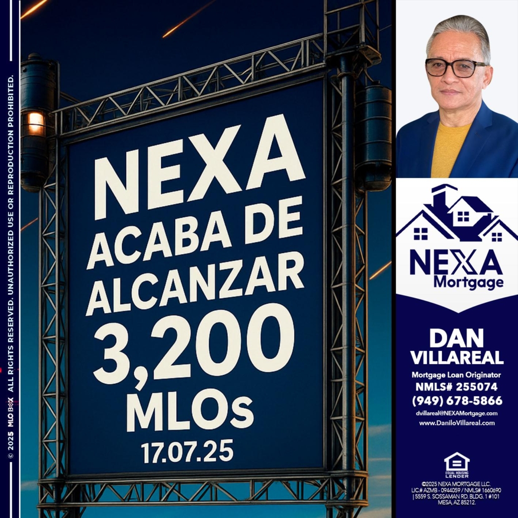 Hi, my name is Dan Villareal. I’m a Loan Officer with NEXA Mortgage LLC., offering personalized mortgage solutions, fast customized quotes, great rates and service with integrity.