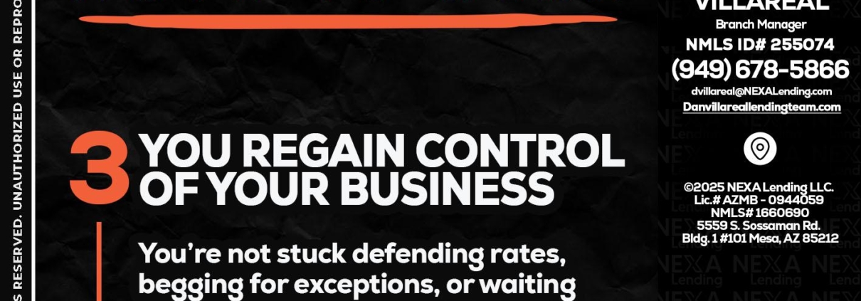 Hi, my name is Dan Villareal. I’m a Loan Officer with NEXA Lending LLC., offering personalized mortgage solutions, fast customized quotes, great rates and service with integrity.