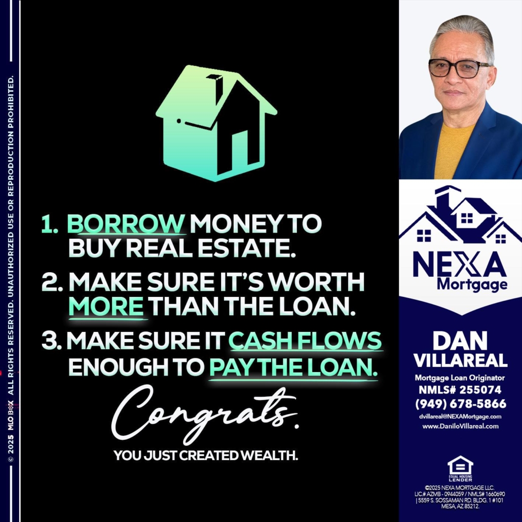 Hi, my name is Dan Villareal. I’m a Loan Officer with NEXA Mortgage LLC., offering personalized mortgage solutions, fast customized quotes, great rates and service with integrity.