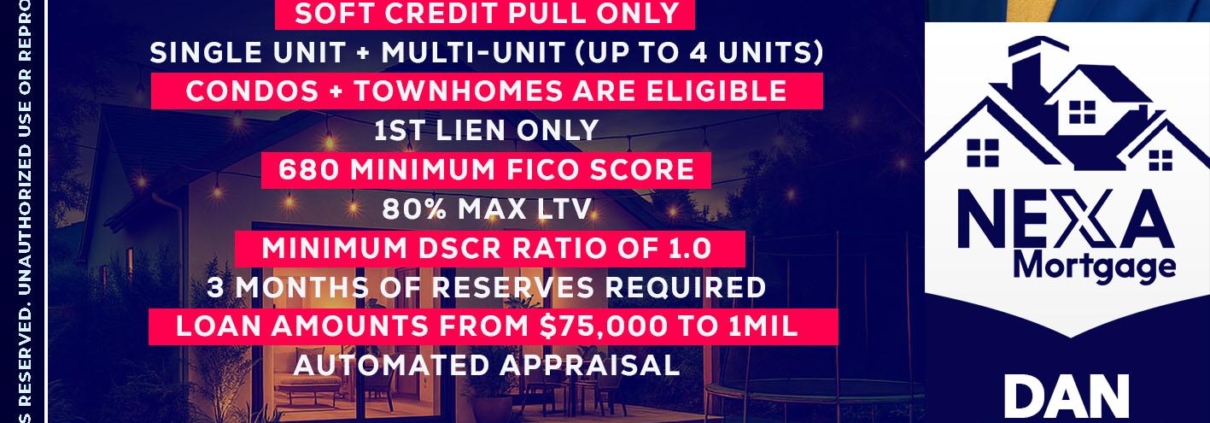 Hi, my name is Dan Villareal. I’m a Loan Officer with NEXA Mortgage LLC., offering personalized mortgage solutions, fast customized quotes, great rates and service with integrity.