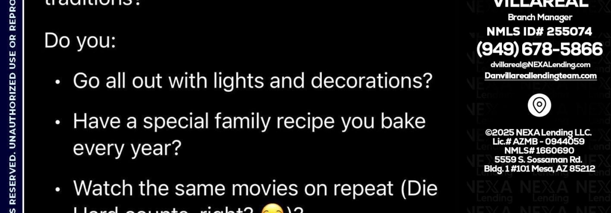 Hi, my name is Dan Villareal. I’m a Loan Officer with NEXA Lending LLC., offering personalized mortgage solutions, fast customized quotes, great rates and service with integrity.