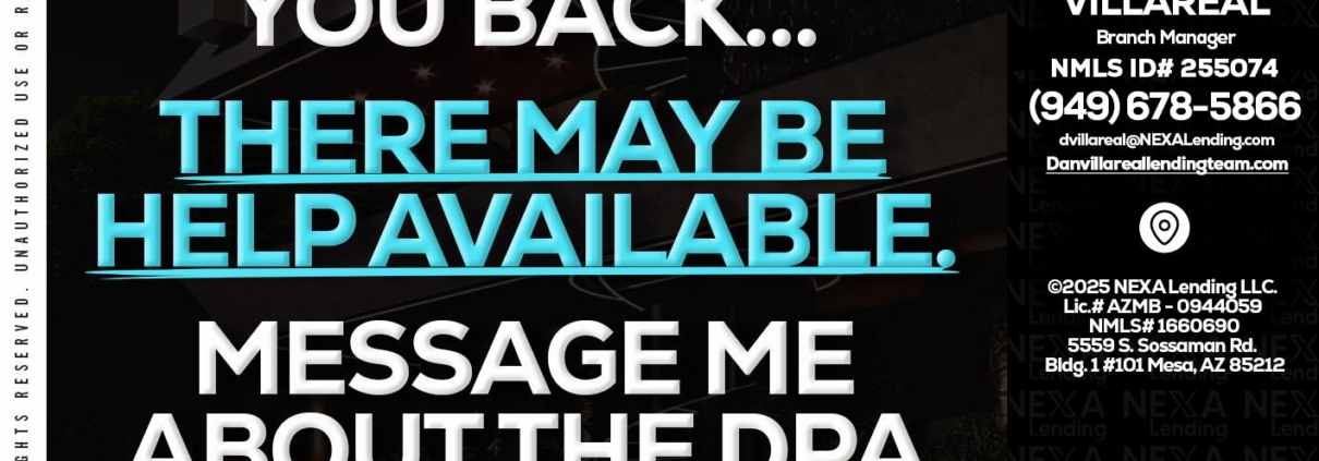 IF UPFRONT - Dan Villareal -Mortgage Loan OriginatorHi, my name is Dan Villareal. I’m a Loan Officer with NEXA Lending LLC., offering personalized mortgage solutions, fast customized quotes, great rates and service with integrity.
