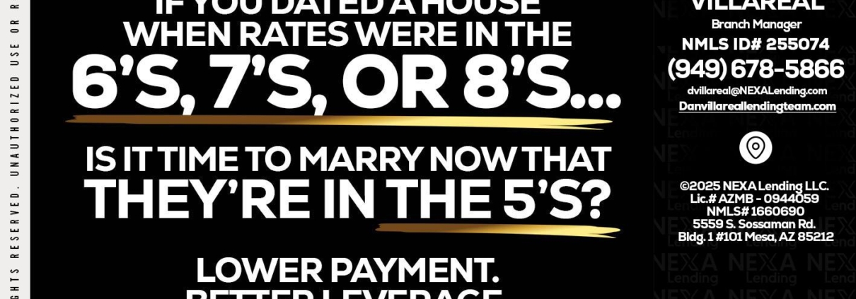Hi, my name is Dan Villareal. I’m a Loan Officer with NEXA Lending LLC., offering personalized mortgage solutions, fast customized quotes, great rates and service with integrity.
