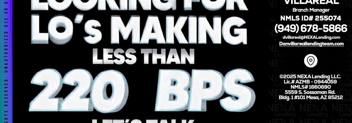 Hi, my name is Dan Villareal. I’m a Loan Officer with NEXA Lending LLC., offering personalized mortgage solutions, fast customized quotes, great rates and service with integrity.