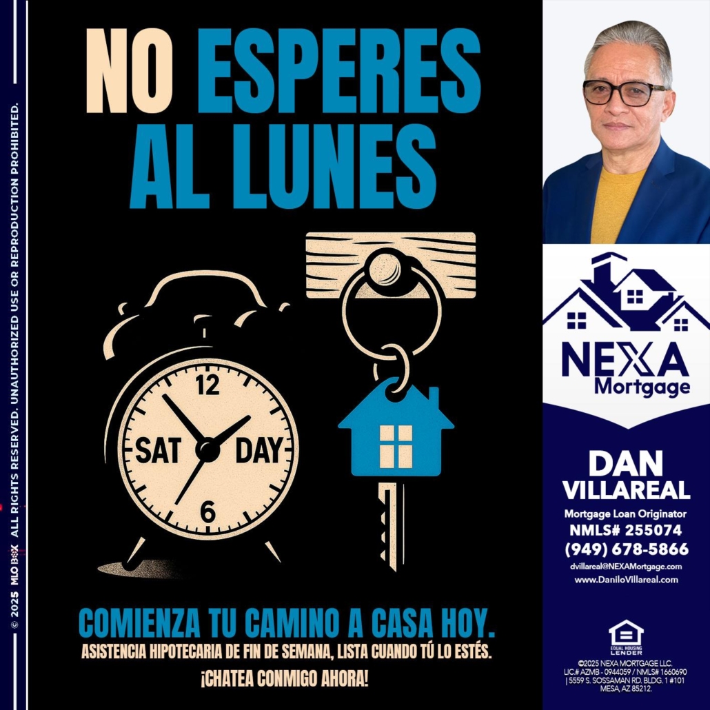 Hi, my name is Dan Villareal. I’m a Loan Officer with NEXA Mortgage LLC., offering personalized mortgage solutions, fast customized quotes, great rates and service with integrity.