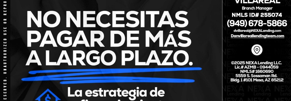 NO NECESITAS MAS - Dan Villareal -Mortgage Loan OriginatorHi, my name is Dan Villareal. I’m a Loan Officer with NEXA Lending LLC., offering personalized mortgage solutions, fast customized quotes, great rates and service with integrity.
