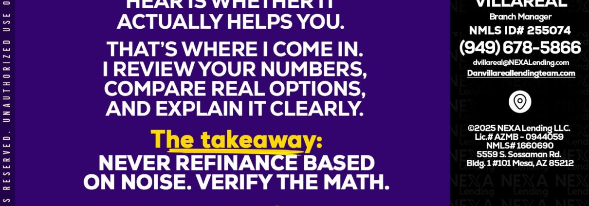 Hi, my name is Dan Villareal. I’m a Loan Officer with NEXA Lending LLC., offering personalized mortgage solutions, fast customized quotes, great rates and service with integrity.
